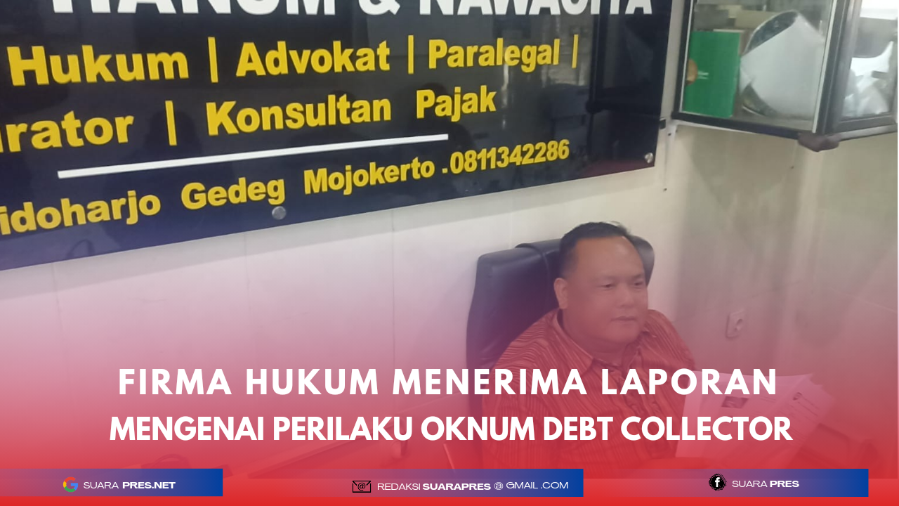MOJOKERTO, Suarapers.net – Kepala kantor Firma Hukum H. Rif’an Hanum & Nawacita, Haji Titoyo, S.E., CTT., CPTT., mengeluhkan perilaku oknum debt collector yang diduga melakukan penarikan paksa kendaraan milik kliennya di pinggir jalan.